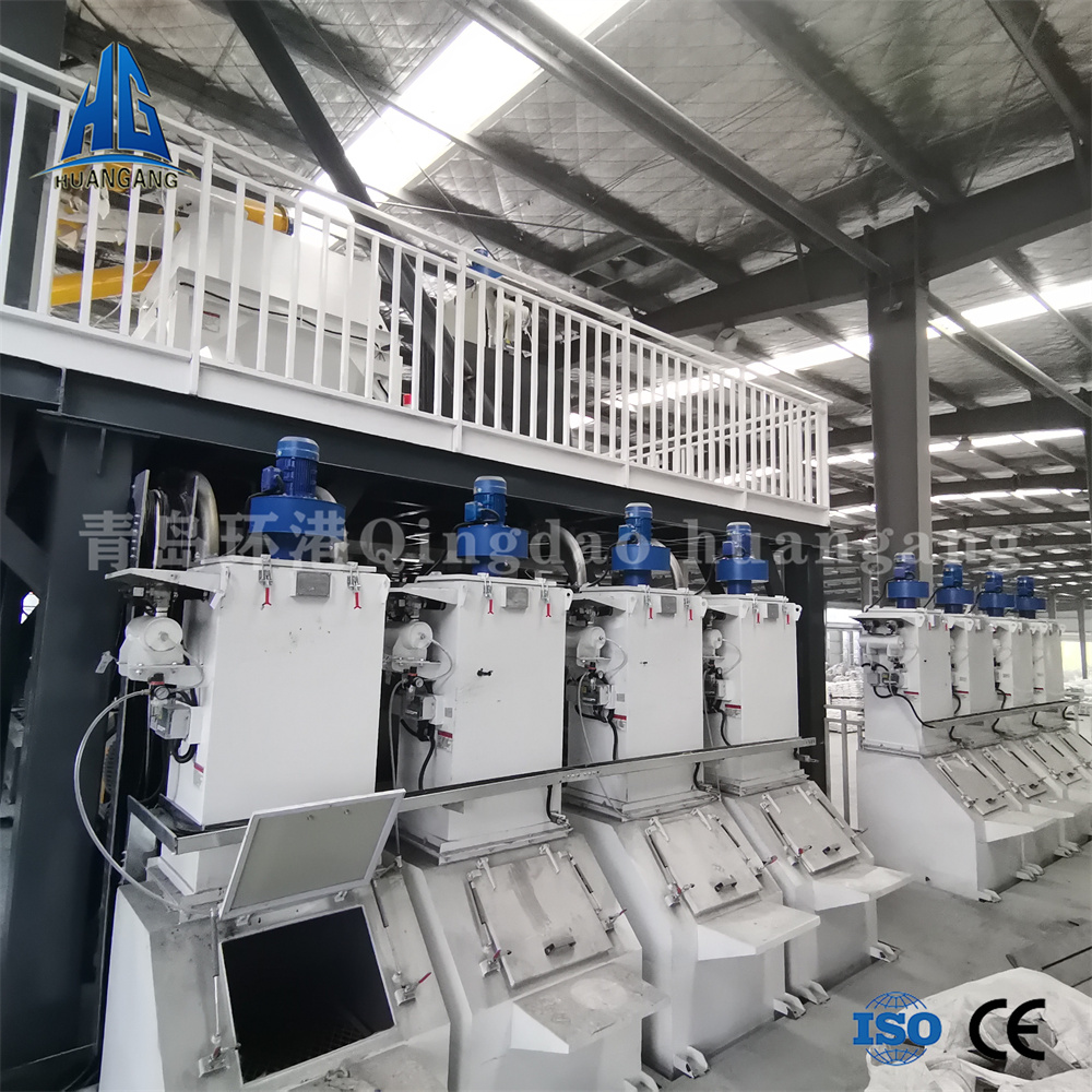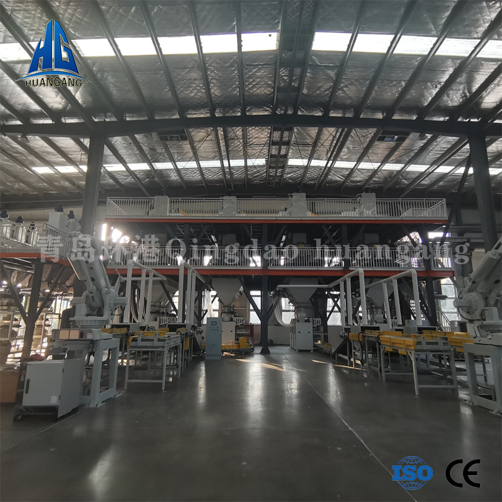 這是一套年產(chǎn)10-30萬(wàn)噸的全自動(dòng)環(huán)保膩?zhàn)臃鄢商自O(shè)備。通過(guò)調(diào)配原料的比例不同可生產(chǎn)內(nèi)墻膩?zhàn)?、外墻膩?zhàn)?、普通膩?zhàn)?、鏡面膩?zhàn)?、石膏膩?zhàn)拥榷喾N類(lèi)膩?zhàn)臃郛a(chǎn)品。每小時(shí)根據(jù)所選型號(hào)不同,可生產(chǎn)10~30噸產(chǎn)品,生產(chǎn)線主樓采用塔式結(jié)構(gòu),粉料倉(cāng)安裝在主樓頂部,外加劑系統(tǒng)采用獨(dú)立平臺(tái)計(jì)量泵送。骨料自上而下經(jīng)過(guò)計(jì)量層、混合機(jī)層、成品倉(cāng)、包裝機(jī)、碼垛線。根據(jù)膩?zhàn)臃鄣呐浞揭?,可通過(guò)電腦計(jì)量精確配料后,經(jīng)過(guò)混合主機(jī)攪拌,即時(shí)生產(chǎn)出需要的膩?zhàn)臃郛a(chǎn)品。全過(guò)程采用智能自動(dòng)化操作模式,減少人力投入